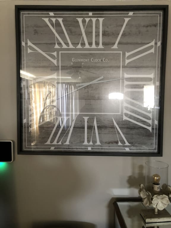 40x40 Sq Grey Woodgrain Clock At Home